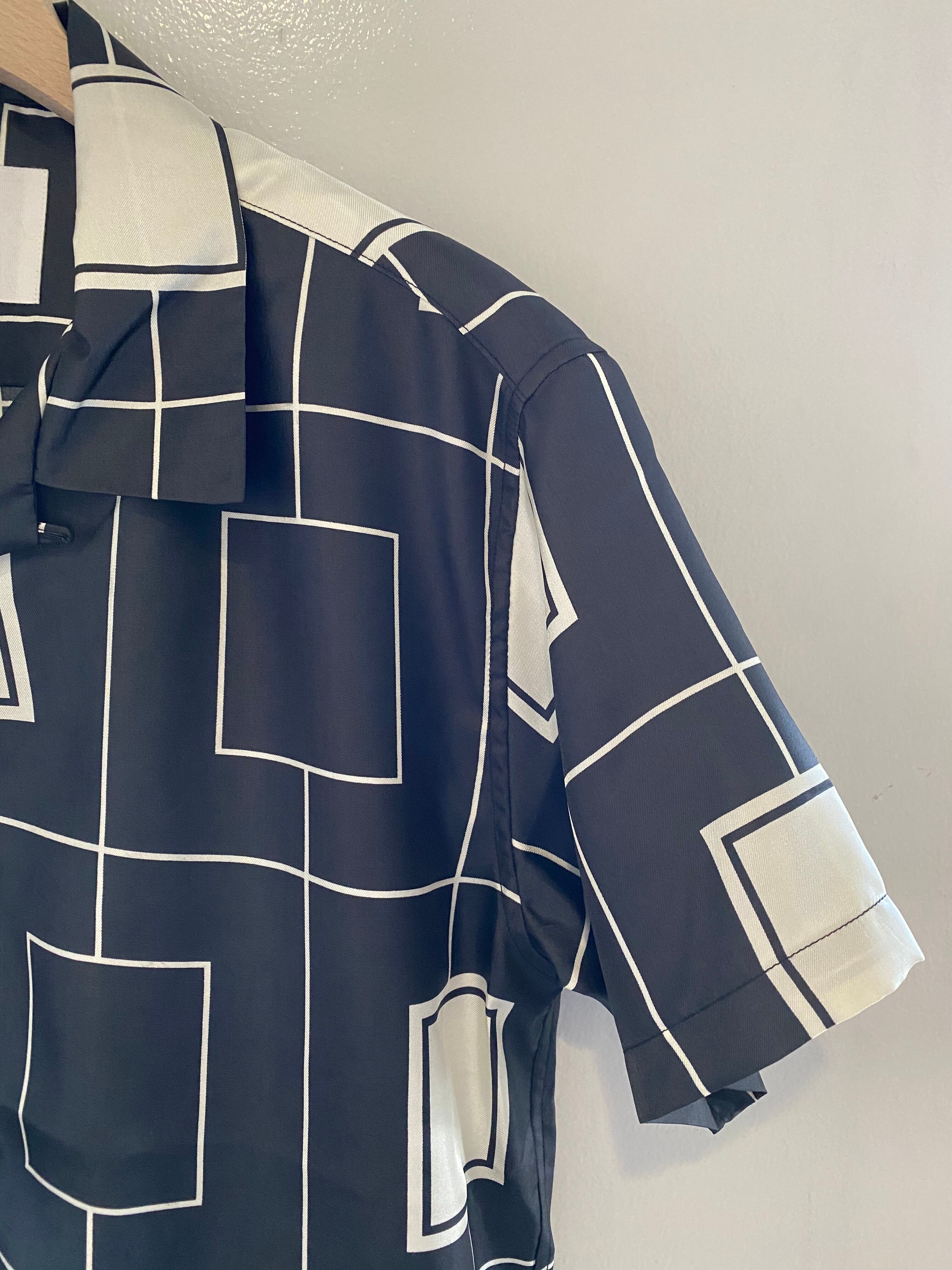 ブラックとホワイトのボックス柄が等間隔で配置され、洗練された仕上がり。